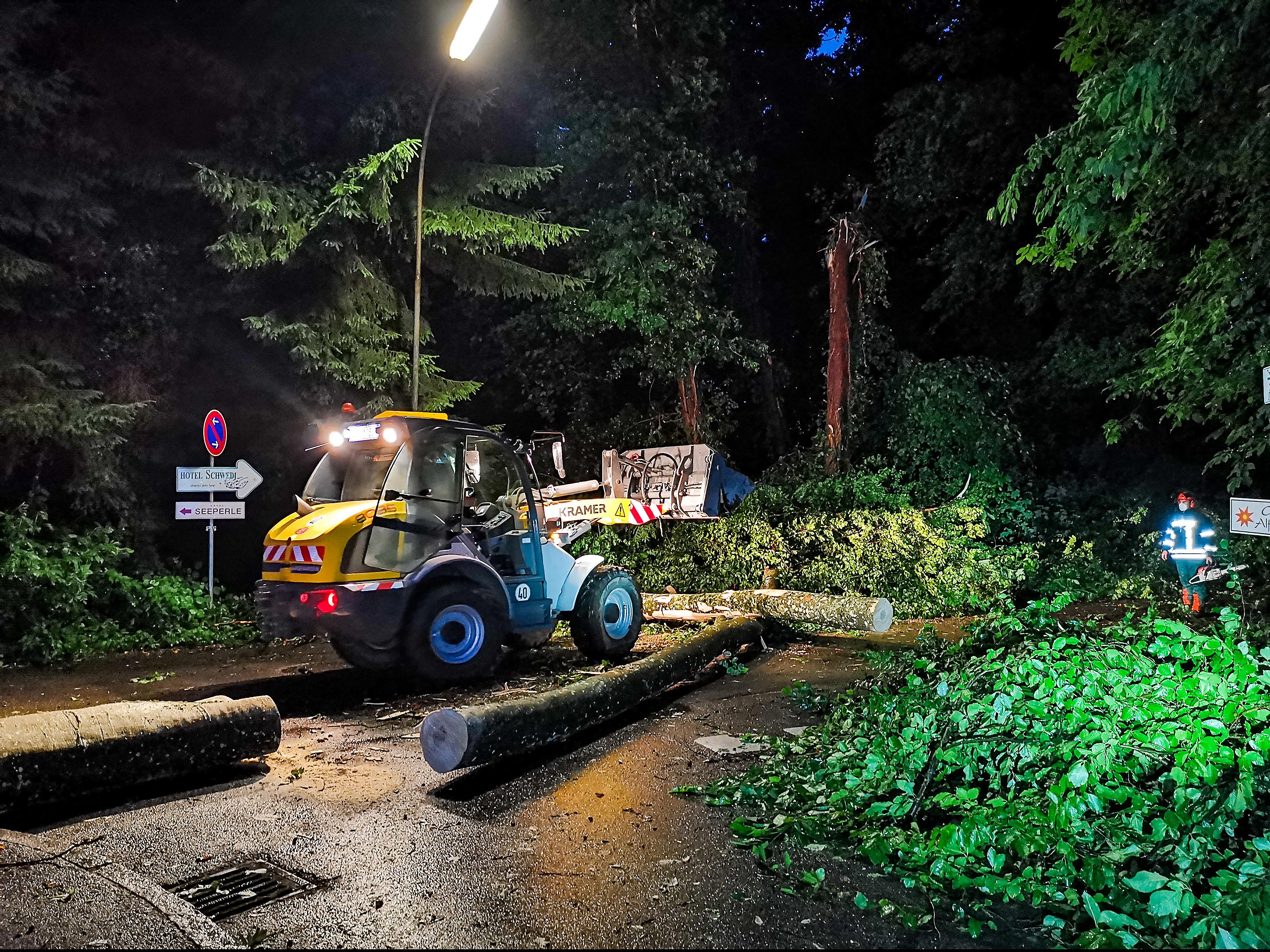 Deprecated: Function utf8_encode() is deprecated in /homepages/45/d16775473/htdocs/feuerwehr/html/einsaetze_show.html on line 146 Teils starke Unwetter sorgen auch in Langenargen für zahlreiche Einsätze. Im Laufe des Abends wurden durch die Kameraden und Kameradinnen der Feuerwehr Langenargen insgesamt 14 Einsatzstellen abgearbeitet. Durch das hohe Einsatzaufkommen wurde bereits früh Gesamtalarm für die Feuerwehr Langenargen ausgelöst. Unter anderem wurden im Westen von Langenargen einige umgestürzte Bäume auf der Straße gemeldet. Vor Ort konnten auf der Straße vier große Bäume, die die Zufahrt zu einem Hotel blockierten, festgestellt werden. Mithilfe der nachgeforderten Kräfte und der Unterstützung des Bauhofs konnten die Bäume von der Straße entfernt werden. Außerdem gab es mehrere Einsatzstellen an denen Wasser im Keller gemeldet war. Durch die Besatzungen des LF 1/42, des GW-T und des LF 2/42 wurden die Einsatzstellen nacheinander abgearbeitet. Gegen 0:30 Uhr konnte der letzte Einsatz beendet werden. |