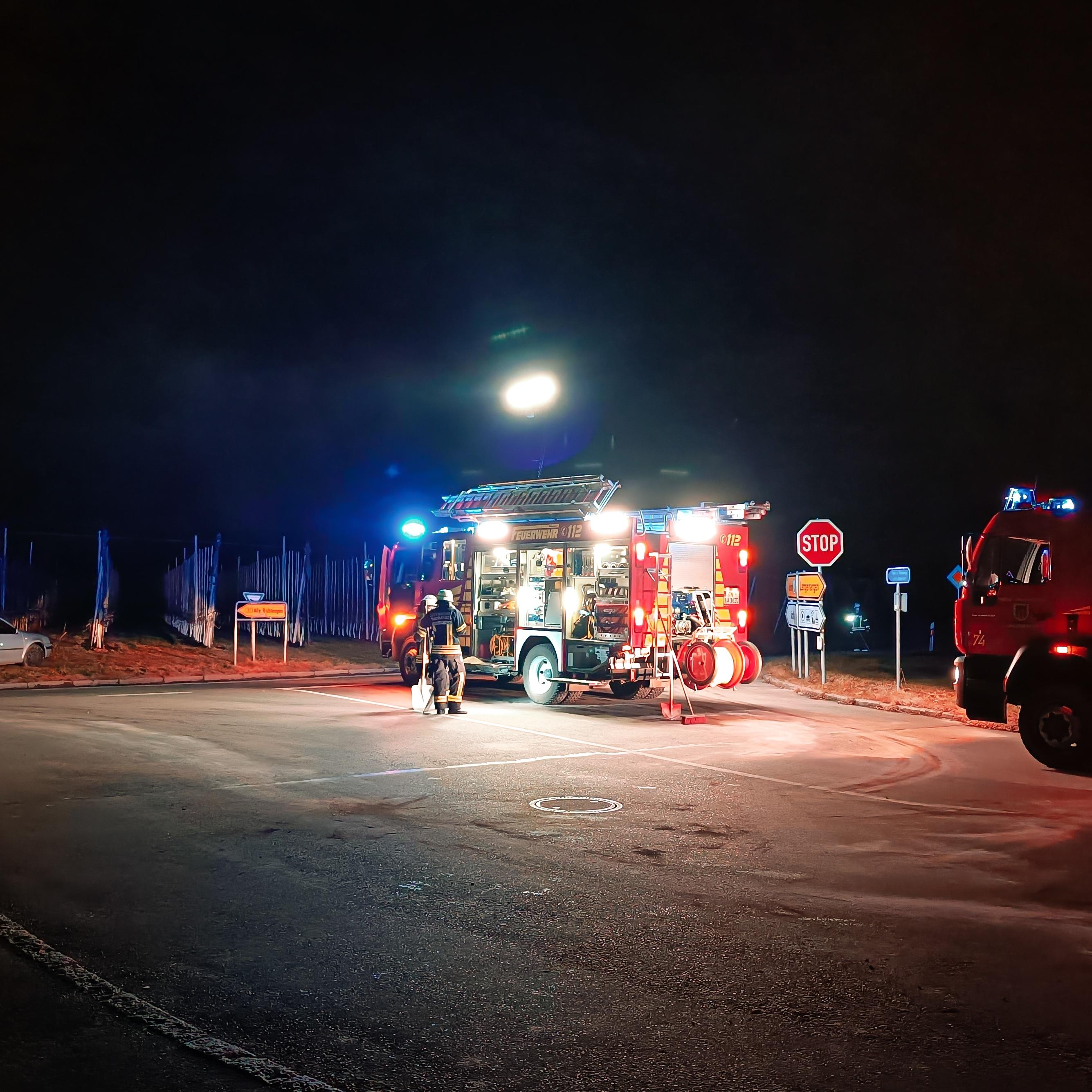 Deprecated: Function utf8_encode() is deprecated in /homepages/45/d16775473/htdocs/feuerwehr/html/einsaetze_show.html on line 146 Kurz nach Mitternacht wurde die Feuerwehr zu einem Verkehrsunfall auf die K 7706 alarmiert. Vor Ort leuchteten die Kräfte die Unfallstelle für die Polizei aus und streuten die großflächige Ölverschmutzung mit Bindemittel ab. Gegen 2 Uhr konnte die Straße wieder für den Verkehr freigegeben werden. |