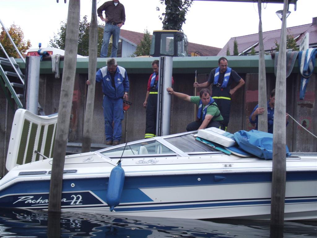 Deprecated: Function utf8_encode() is deprecated in /homepages/45/d16775473/htdocs/feuerwehr/html/einsaetze_show.html on line 146 Ein untergegangenes Boot musste im BMK Hafen durch die Feuerwehr geborgen werden. Mit Hilfe einer Tauchpumpe wurde das Wasser aus dem Boot entfernt. AnschlieÃend wurde das Boot zum Hafenkran geschleppt, und aus dem Hafenbecken gehoben. Betriebsmittel liefen keine aus, so war ein Einsatz der Ãlsperren nicht notwendig. |