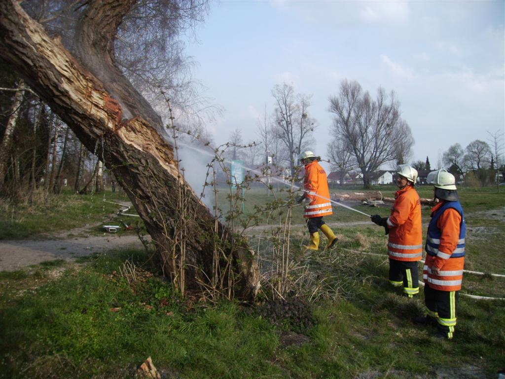 Deprecated: Function utf8_encode() is deprecated in /homepages/45/d16775473/htdocs/feuerwehr/html/einsaetze_show.html on line 146 Wegen eines brennenden Baumes rückte die FFW Langenargen an den Strand am DLRG-Heim. Der Baum wurde mit einem C-Rohr gelöscht. Um an die inneren Brandherde zu gelangen wurde mit der Motorsäge die Rinde des teilweise holen Baumes entfernt. |