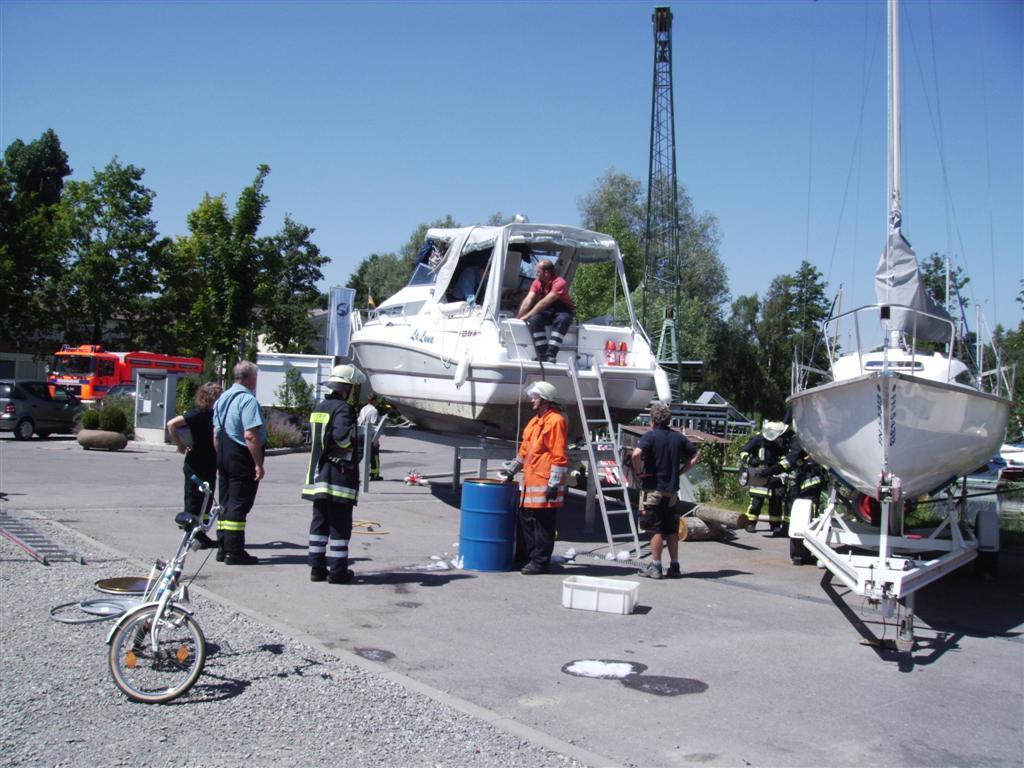 Deprecated: Function utf8_encode() is deprecated in /homepages/45/d16775473/htdocs/feuerwehr/html/einsaetze_show.html on line 146 Aus vorhergegangenem Einsatz (Montag) ergab sich ein weiterer Einsatz. Da nun ein Sachverständiger das Motorboot untersucht hatte stellte sich heraus das noch ausgelaufenes Benzin im Boot vorhanden war. Dieses wurde mit Unterstützung der Häfler Kameraden und dem RW 2 in bereitgestellte Fässer abgepumpt. Weitere Kräfte vor Ort: RW 2 Feuerwehr Friedrichshafen Radlader Bauhof Langenargen |