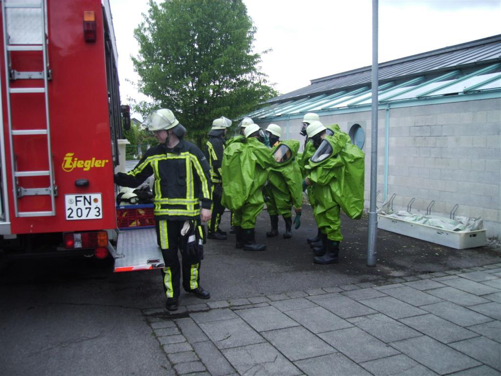 Deprecated: Function utf8_encode() is deprecated in /homepages/45/d16775473/htdocs/feuerwehr/html/einsaetze_show.html on line 146 Im Strandbad Langenargen trat durch einen defekten Dosierer Chlorgas aus. Das Gebäude in dem sich die Chlorgasanlage befand, wurde von der Feuerwehr Langenargen abgeschirmt. Nach Eintreffen der Feuerwehr Friedrichshafen begann man unter Vollschutz das defekte Dosiergerät abzudichten. Zur Unterstützung waren die Feuerwehr Friedrichshafen, Rettungsdienst, Polizei die groÃräumig absperrte und der stellv. KBM vor Ort. |