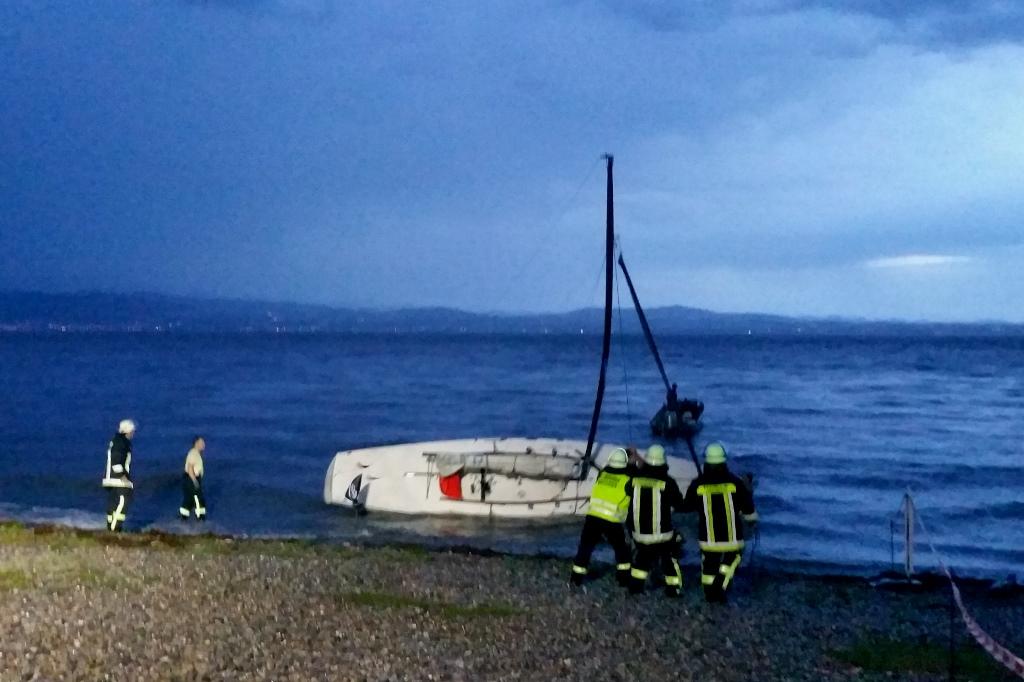 Deprecated: Function utf8_encode() is deprecated in /homepages/45/d16775473/htdocs/feuerwehr/html/einsaetze_show.html on line 146 Durch ein aufziehendes Gewitter wurden drei vor Langenargen vor Anker liegende Segelboote losgerissen und strandeten im Bereich der Uferpromenade. Die alarmierte Feuerwehr Langenargen sperrte den Bereich vor zahlreichen Schaulustigen ab und sicherte die Kraftstofftanks der Boote um eine Umweltgefährdung auszuschließen. Im weiteren Verlauf wurde die Einsatzstelle ausgeleuchtet und der Besitzer bei der Bergung der Boote unterstützt. Weitere Kräfte Polizei |