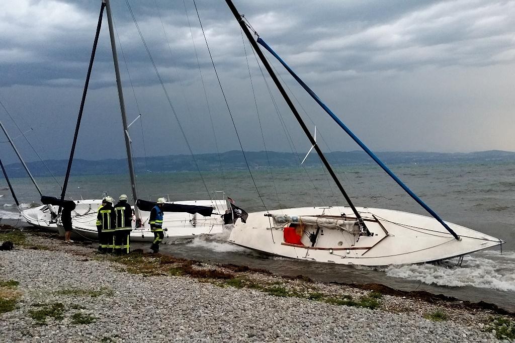 Deprecated: Function utf8_encode() is deprecated in /homepages/45/d16775473/htdocs/feuerwehr/html/einsaetze_show.html on line 146 Durch ein aufziehendes Gewitter wurden drei vor Langenargen vor Anker liegende Segelboote losgerissen und strandeten im Bereich der Uferpromenade. Die alarmierte Feuerwehr Langenargen sperrte den Bereich vor zahlreichen Schaulustigen ab und sicherte die Kraftstofftanks um eine Umweltgefährdung auszuschließen. Im weiteren Verlauf wurde die Einsatzstelle ausgeleuchtet und der Besitzer der Boote bei der Bergung unterstützt. weitere Kräfte Polizei |