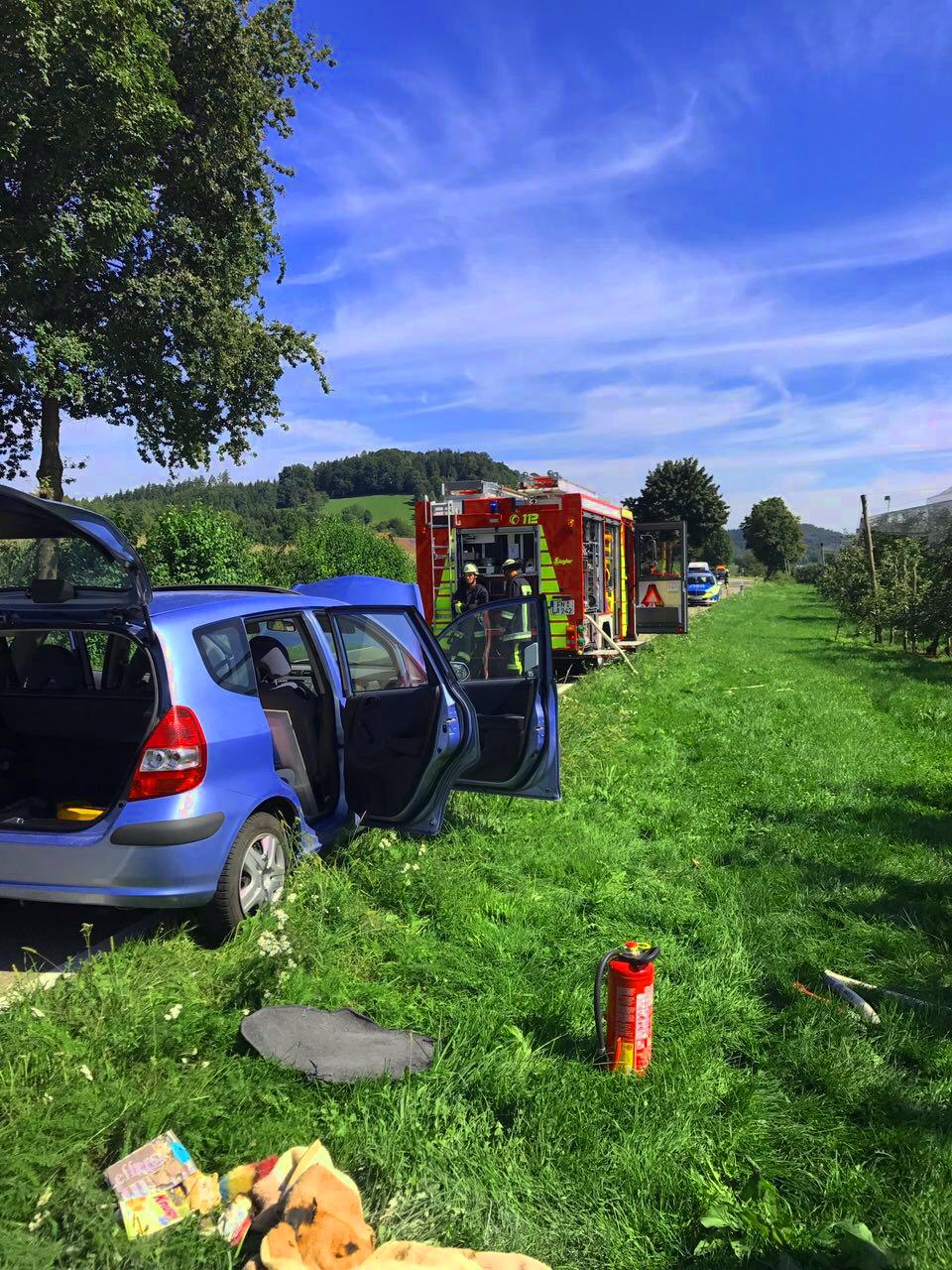 Deprecated: Function utf8_encode() is deprecated in /homepages/45/d16775473/htdocs/feuerwehr/html/einsaetze_show.html on line 146 Während der Fahrt auf der K 7706 in Richtung Tettnang bemerkten die beiden Insassen eines PKW plötzlich Rauch und Flammen, stoppten das Fahrzeug und brachten sich in Sicherheit. Mit der Unterstützung von Ersthelfern konnte der Entstehungsbrand, der durch ein Ladekabel im Zigarettenanzünder ausgelöst wurde, gelöscht werden. Die Besatzung des Löschfahrzeuges aus Oberdorf kontrollierte den Brandherd und sperrte die Kreisstraße bis zum Eintreffen des Abschleppunternehmens. Weitere Kräfte vor Ort: First Responder Rettungsdienst Polizei |