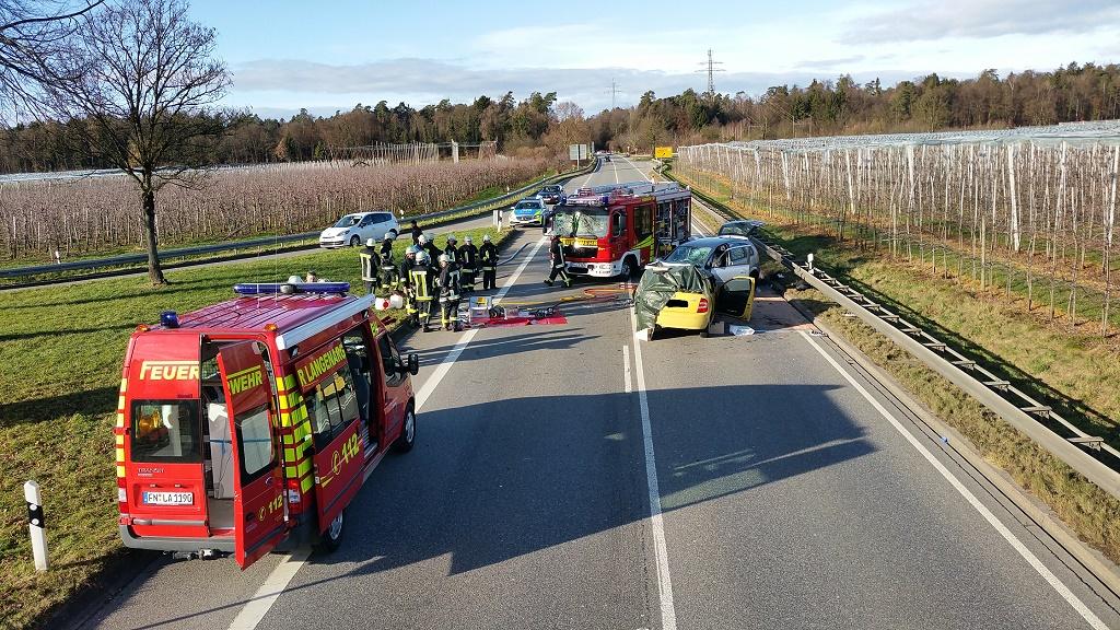 Deprecated: Function utf8_encode() is deprecated in /homepages/45/d16775473/htdocs/feuerwehr/html/einsaetze_show.html on line 146 Unter dem Alarmstichwort „ Frontalzusammenstoß – mehrere Personen eingeklemmt“ wurde am Silvesternachmittag ein Großaufgebot von Rettungskräften auf die B31 bei Langenargen-Oberdorf alarmiert. Durch die ersteintreffenden Kräfte der Feuerwehr wurde sofort die Lage erkundet und der Brandschutz an der Unfallstelle sichergestellt. Anschließend wurde mit den nachgerückten Kräften eine umfangreiche technische Rettung vorbereitet. Leider kam für beide beteiligten Fahrer jede Hilfe zu spät. Im weiteren Verlauf sicherte die Feuerwehr die Einsatzstelle und unterstützte die Bergung der Fahrzeuge. Abschließend wurde die Fahrbahn gereinigt. Weitere Kräfte Feuerwehr Kressbronn Feuerwehr Eriskirch Feuerwehr Friedrichshafen stellv. Kreisbrandmeister First Responder Polizei Rettungsdienst mit mehreren Fahrzeugen und organisatorischem Leiter |
