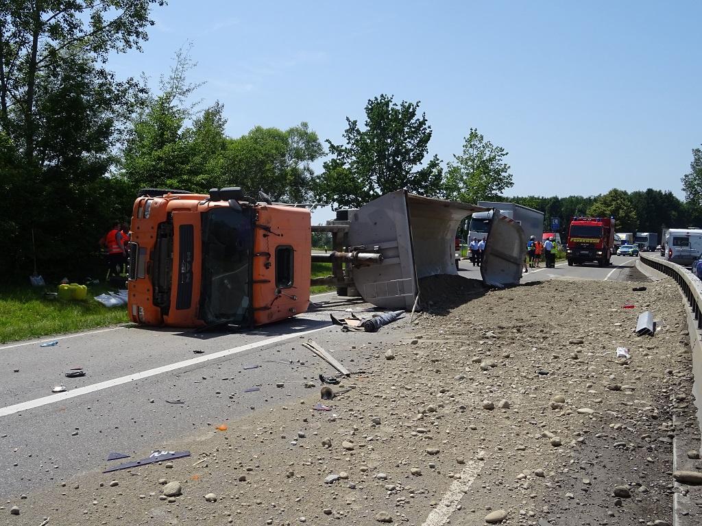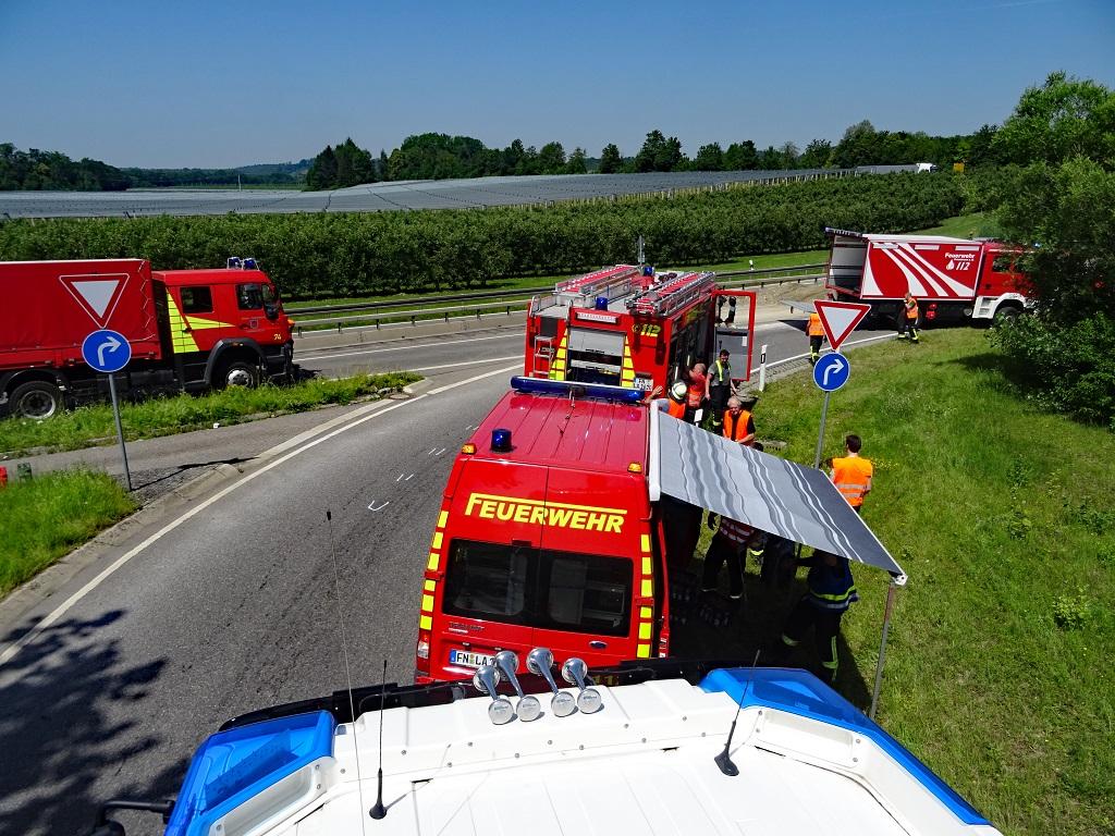 Deprecated: Function utf8_encode() is deprecated in /homepages/45/d16775473/htdocs/feuerwehr/html/einsaetze_show.html on line 146 In der B 31-Auffahrt Kressbronn geriet am Mittag ein Kieslaster ins Kippen, touchierte einen weiteren LKW und blieb schließlich auf der Fahrbahn liegen. Dabei verteilte sich die Ladung auf der Straße und verschob die Mittelleitplanke auf die Fahrspur in Richtung Friedrichshafen. Beim Eintreffen der Feuerwehr Langenargen war der Fahrer bereits befreit und wurde vom Rettungsdienst versorgt. Die Einsatzkräfte sicherten die Unfallstelle ab, stellten den Brandschutz sicher und pumpten im weiteren Verlauf den Kraftstoff des LKW ab. Zusätzlich wurden alle Einsatzkräfte, die in Einsatzbekleidung bei Temperaturen von 34 Grad und an der prallen Sonne arbeiten mussten mit Getränken versorgt. Die Fahrbahnreinigung und Bergung übernahm eine Spezialfirma. Einsatzkräfte vor Ort: Feuerwehr Kressbronn mit HLF und GW-T Rettungsdienst mit RTW und NEF Polizei |