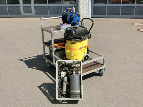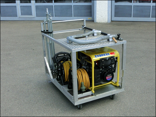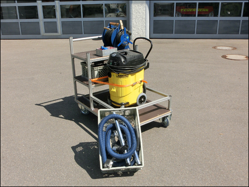 Im Einsatzfall stehen im Feuerwehrhaus sechs verschiedene Rollwagen für den Transport im GWT bereit. Auf die Rollwagen wurde Einsatzmaterial fest verlastet, dieses ist ebenfalls am Einsatzort durch die Rollwagen mobil einsetzbar.Tauchpumpen