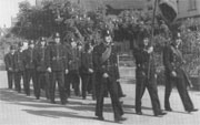 auch so durchgeführt wurde ist nicht bekannt. Die 30er Jahre brachten auch für die Feuerwehr einige Änderungen mit sich. So wurde eine neu Grußform und Marschbestimmung verordnet, Exerzierübungen mussten durchgeführt werden und statt der bisherigen Einteilung in Zugführer, Steiger und dergleichen mehr wurde der Einheitsfeuerwehrmann gefordert. Es wurden neue Feuerwehrordnungen herausgegeben, nach denen 1937 alle über 60 Jahre alten Männer zurücktreten mussten. Im Juli 1937 wurde die selbstständige Feuerwehr Oberdorf durch Gemeindereform der Feuerwehr Langenargen als Halbzug angegliedert. Der Mannschaftsstand betrug danach ca. 100 Mann. Seit 1937 werden bis heute jährlich 20 bis 24 Übungen abgehalten. Die Kriegsjahre sind auch an der Feuerwehr nicht spurlos vorübergegangen. Wie im Ersten Weltkrieg wurden auch im Zweiten Weltkrieg große Lücken in die Reihen der Feuerwehr gerissen, die man durch Ersatzleistungen der Hitlerjugend und mit Notverordnungen durch sonstige noch verfügbare Männer zu schließen versuchte. Viele zusätzliche Übungen wurden notwendig. Das Aufgabengebiet und die Übungen selbst hatten sich rasch verändert: Streifendienst und Wachdienst waren notwendig. Luftschutzübungen, Übungen zur Brandbombenbekämpfung usw. mussten durchgeführt werden. |