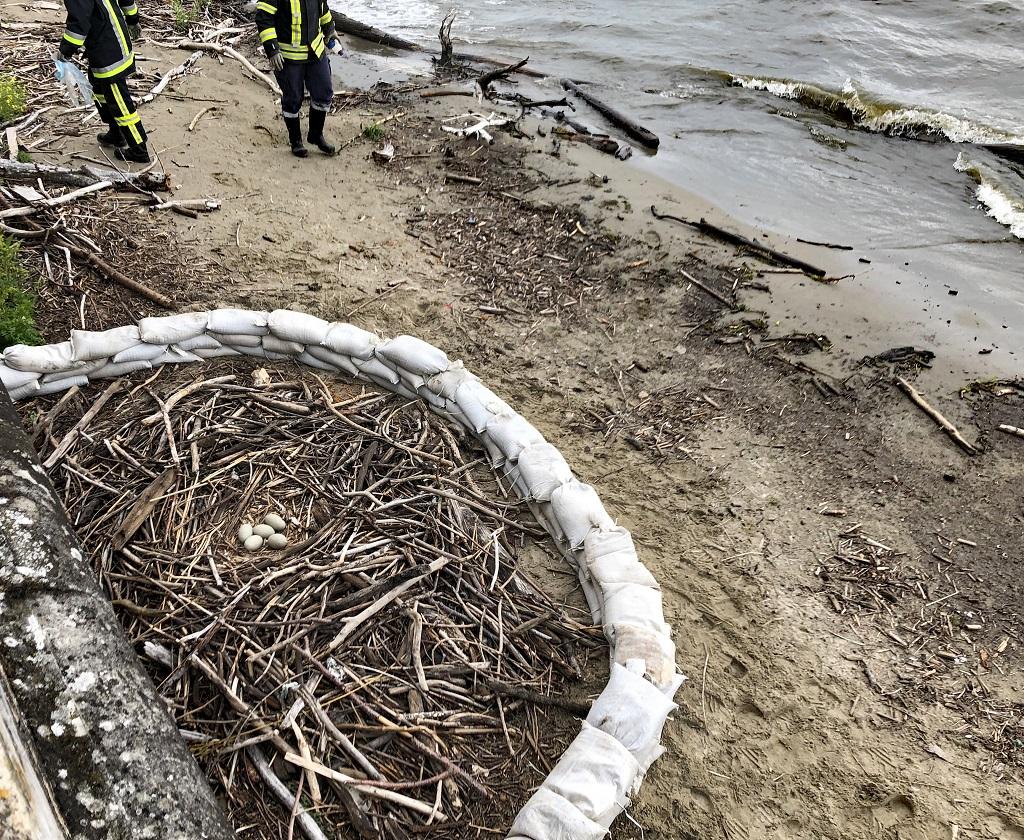 Deprecated: Function utf8_encode() is deprecated in /homepages/45/d16775473/htdocs/feuerwehr/html/einsaetze_show.html on line 146 Besorgte Spaziergänger meldeten, dass ein Schwanennest an der Langenargener Uferpromenade durch Wellengang bei aufkommenden Windböen gefährdeten sei. Durch die Feuerwehr wurde zum Schutz des Nests und der darin befindlichen Eier eine Sandsackbarriere errichtet. |